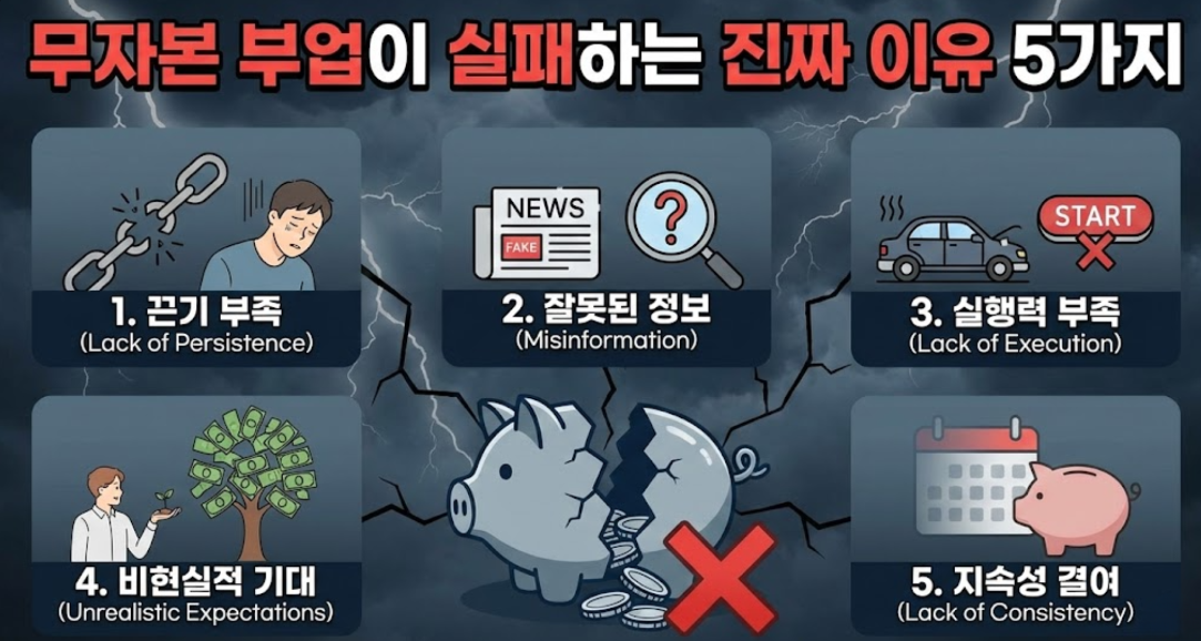 왜 이런 일이 반복될까요? 단순히 의지가 부족해서일까요? 그렇지 않습니다. 대부분은 구조를 이해하지 못한 채 시작했기 때문입니다. 이번 글에서는 무자본 부업이 실패하는 현실적인 이유를 구체적으로 분석해보겠습니다.